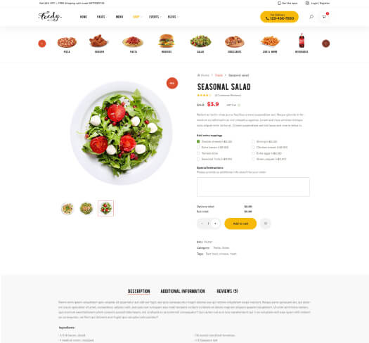 In the theme, We created ready to use homepages for fast food restaurant, healthy food delivery. Especially, all the demo data and pages will be imported into your site in a single click.